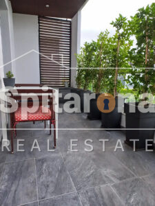 Ιδιαίτερο πλεονέκτημα αποτελεί το εντυπωσιακό roof garden με θέα θάλασσα, εξοπλισμένο με πάγκο, νεροχύτη και επαγωγική εστία, καθώς και ο ιδιωτικός διαμορφωμένος κήπος που προσφέρει στιγμές χαλάρωσης και φιλοξενίας. Περιλαμβάνεται θέση στάθμευσης.